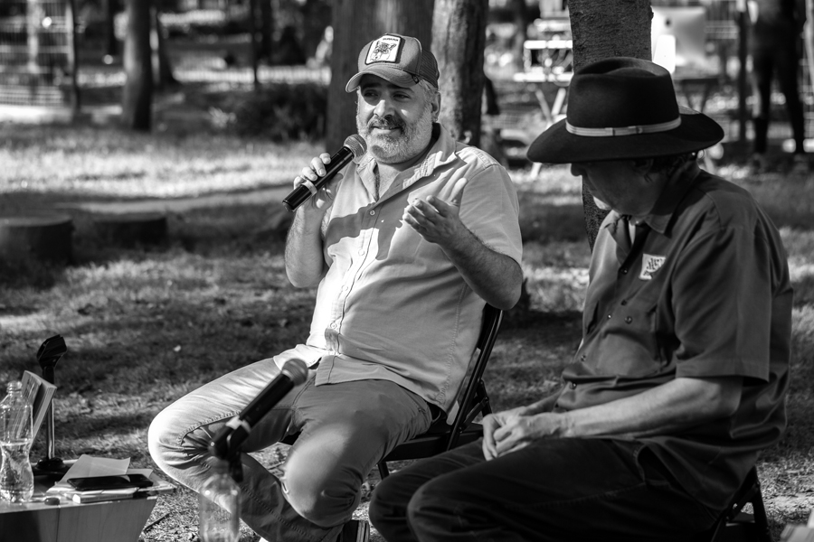 Llego a la presentación del libro de Guillermo Fadanelli lista para retratarle. Me da la impresión que el escritor no quiere interactuar mucho con la gente, ya que percibo que el autor de FANDELLI ESCONDE SU ROSTRO tras ese sombrero negro. Por ello, después de la presentación, no me animo a saludarle ni a pedirle que me pose para una foto: pienso que la imagen puede salir acartonada. Además, voy por mi cuenta y no para un medio de comunicación, ergo no compro ni su novela. Así, mientras el escritor da alguno autógrafos, yo actuo y me voy como un gato(a) sigiloso(a) de Casa del Lago.